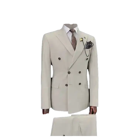 क्लासिक बीज डबल-ब्रेस्टेड पुरुषों के सूट 2 पीसी फ्लैट ब्लेज़र जिपर फ्लाई ट्राउजर के साथ आकार आकस्मिक पोशाक