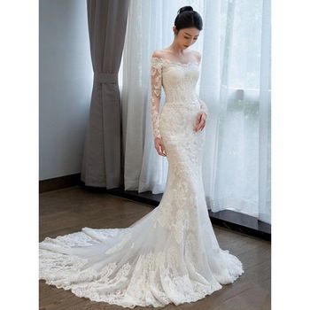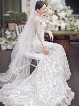 Di alta qualità di lusso manica lunga avorio pizzo sirena abiti da sposa vedere attraverso per abiti da sposa MWN2