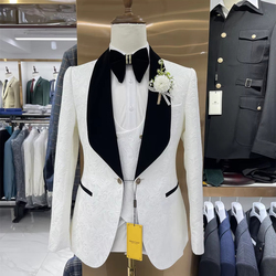 Branco Mens Ternos Blazers Noivo Cerimônias Groomsmen Casamento/Prom/Jantar 3 Peças (Jacket + Colete + Calças) MS723