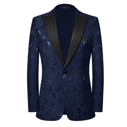 Azul marinho Navyblue Jaquetas Impressão 3D Jacquard Tecido Groom Encerramento Collar Moda Ternos para Homens Ternos De Casamento MBS678