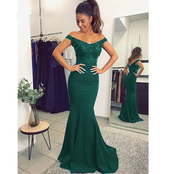 Fora do ombro arco lantejoula África Wedding Guest Maid of Honor Vestido de festa Robe Verde escuro sereia dama vestidos MB627